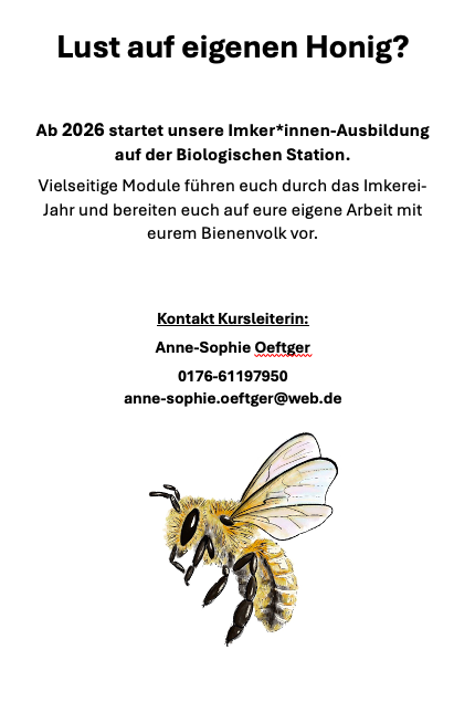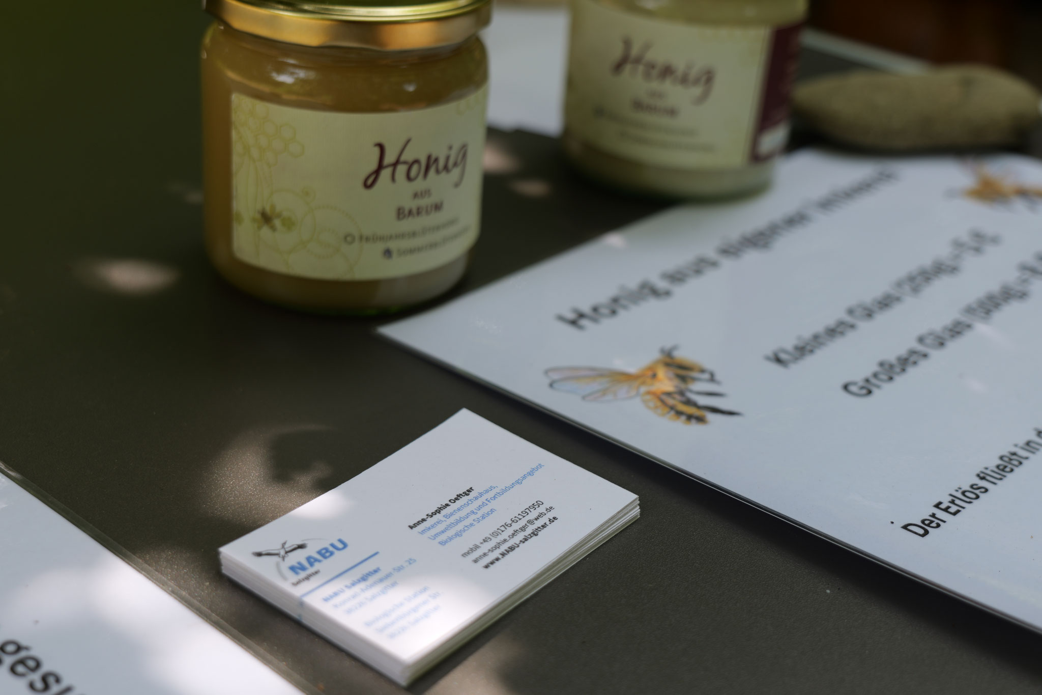 Mehrere Bienenvölker werden hier gehalten. Seit diesem Frühjahr gibt es weitere Bienenvölker in Außenständen. Zu festen Terminen, aber auch nach Vereinbarung, kann hier den fleißigen Bienen bei der Honigproduktion in die Waben geschaut werden. Derzeit (Juni 2025) findet ein Imkerkurs statt, ein weiterer Kurs ist in Planung.
