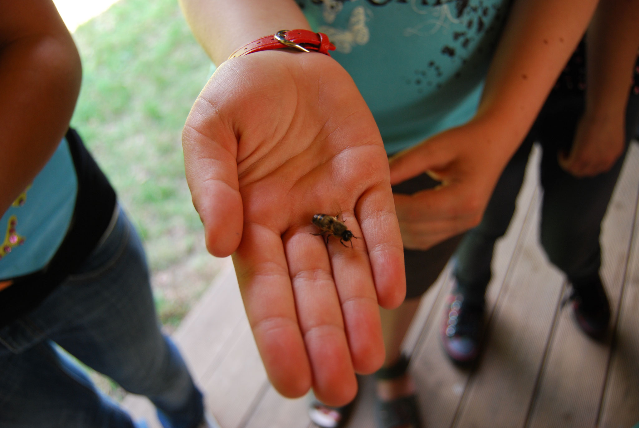 Im Bienenschauhaus auf unserer Biologischen Station können die Honigbienen aus nächster Nähe beobachtet werden. Wer nicht allzu nah kommen möchte, darf durch eine Scheibe zuschauen.